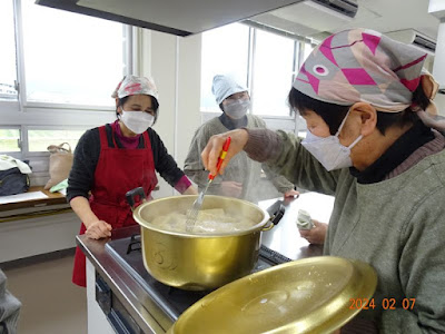 2月7日(水)に地域指導者の方のご指導の元、こんにゃく芋を使ってのこんにゃく作りをしました。